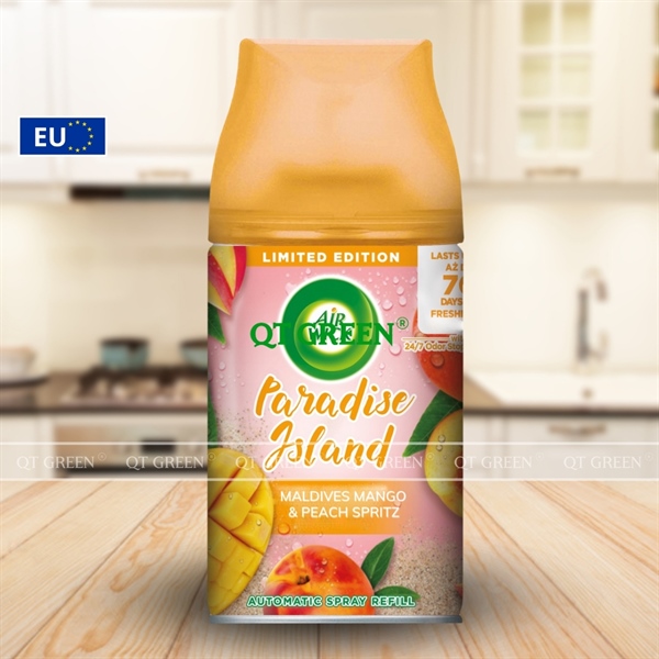 Bình xịt thơm phòng Air Wick Automatic Spray 250ml Maldives Mango & Peach Spritz - xoài Maldives, gió biển