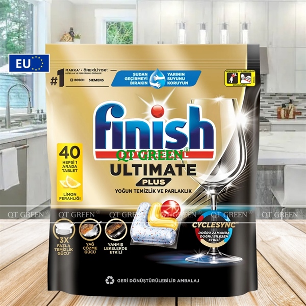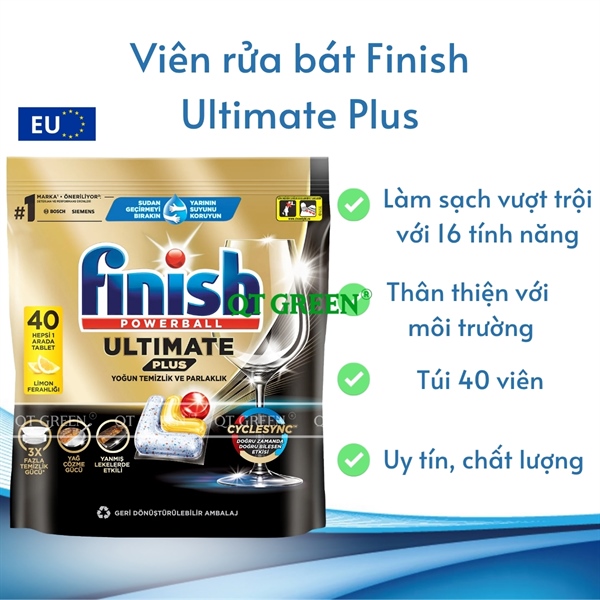 - Viên rửa bát Finish Ultimate Plus là dòng viên rửa cao cấp với 16 tính năng ưu việt giúp làm sạch bát đĩa, bảo vệ đồ dùng nhà bếp và máy rửa bát.