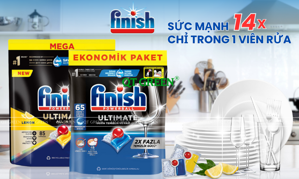 Song song với việc chọn máy rửa bát nào tốt nhất, thì việc chọn viên rửa bát cũng không kém phần quan trọng. Thấu hiểu hết được mọi nhu cầu tăng cao của các bà nội trợ trên thế giới, Finish đã cho ra mắt các loại viên rửa bát Finish với nhiều tính năng công dụng khác nhau như Finish Classic, Finish Power Essential, Finish Quantum All in 1, Finish Ultimate Plus. Cùng QT Green tìm hiểu những dòng viên rửa bát được ưa chuộng nhất hiện nay nhé